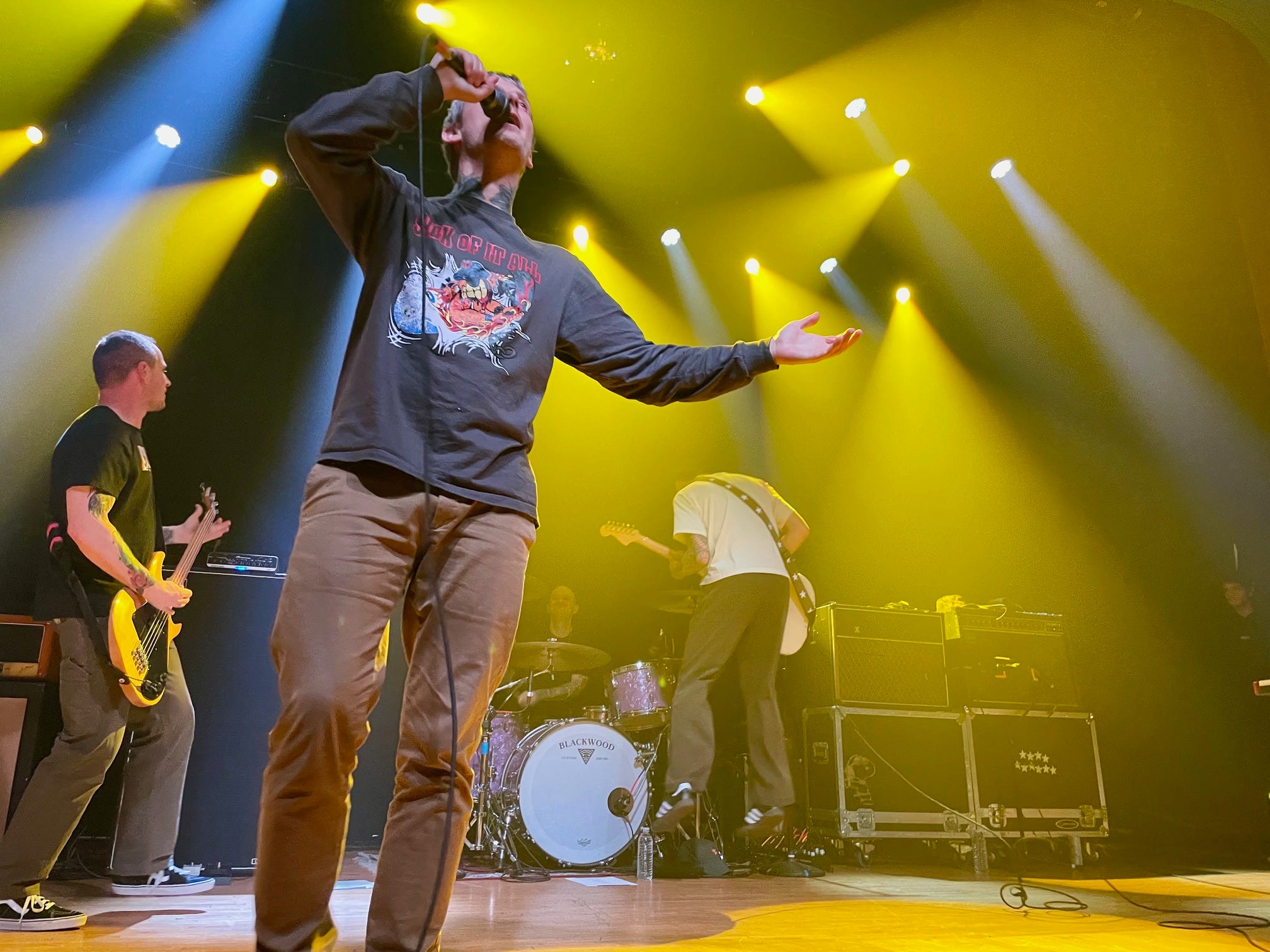I’ve only thrown my back out once and that was from doing work outside of music. But there are guys younger than me in hardcore bands that are really struggling with back problems. It can come for you any time, it’s really quite scary. If you just take the wrong turn on stage you can kick something up. Sorry everybody if this is old guy corner, but it will come for you someday. I promise you.